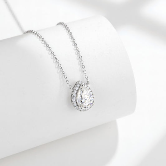 Rainbow Aurora · 2 carat pear shaped moissanite necklace