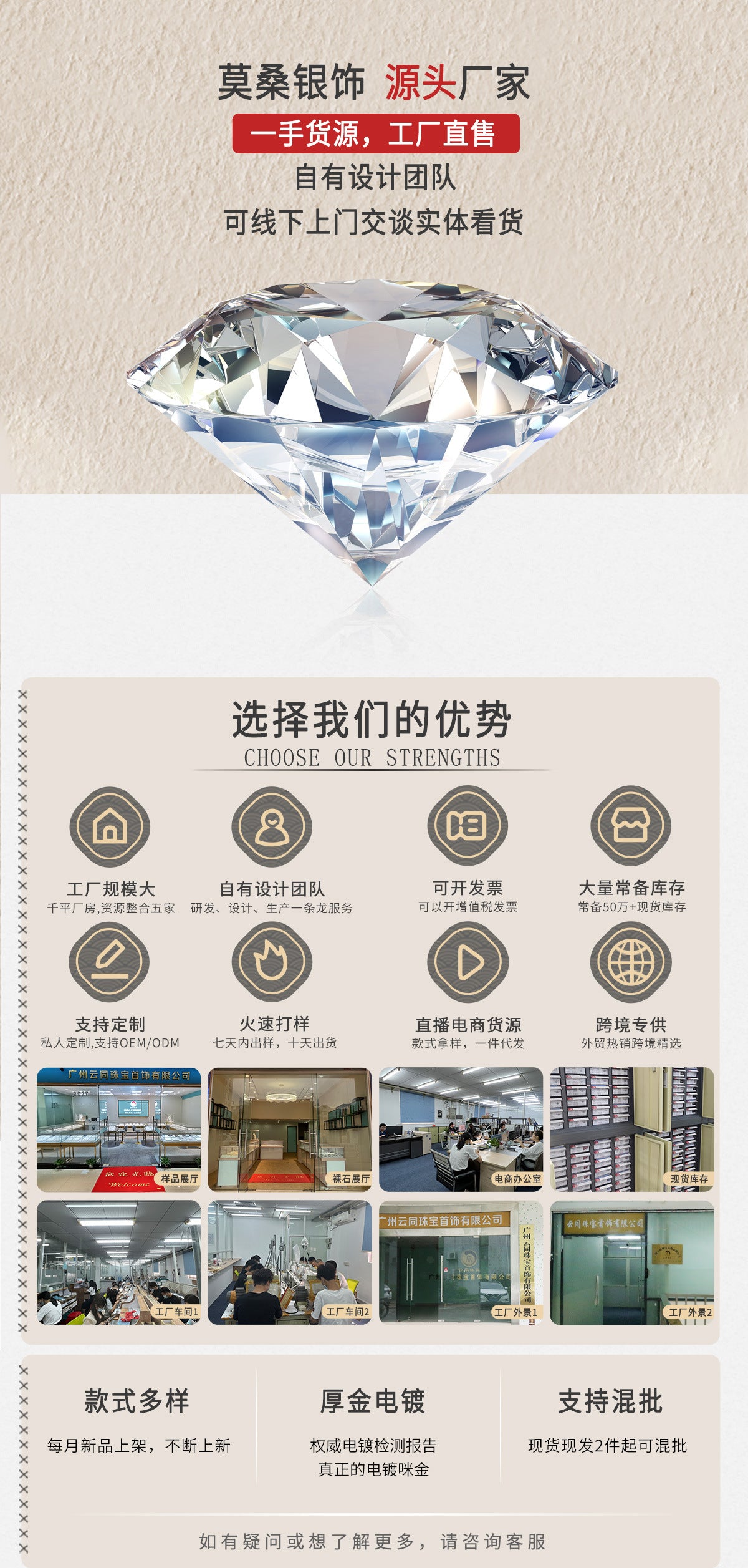 Moissanite hardness of 9.25+925 silver plated with rhodium, with scratch and wear resistance three times higher than ordinary jewelry
